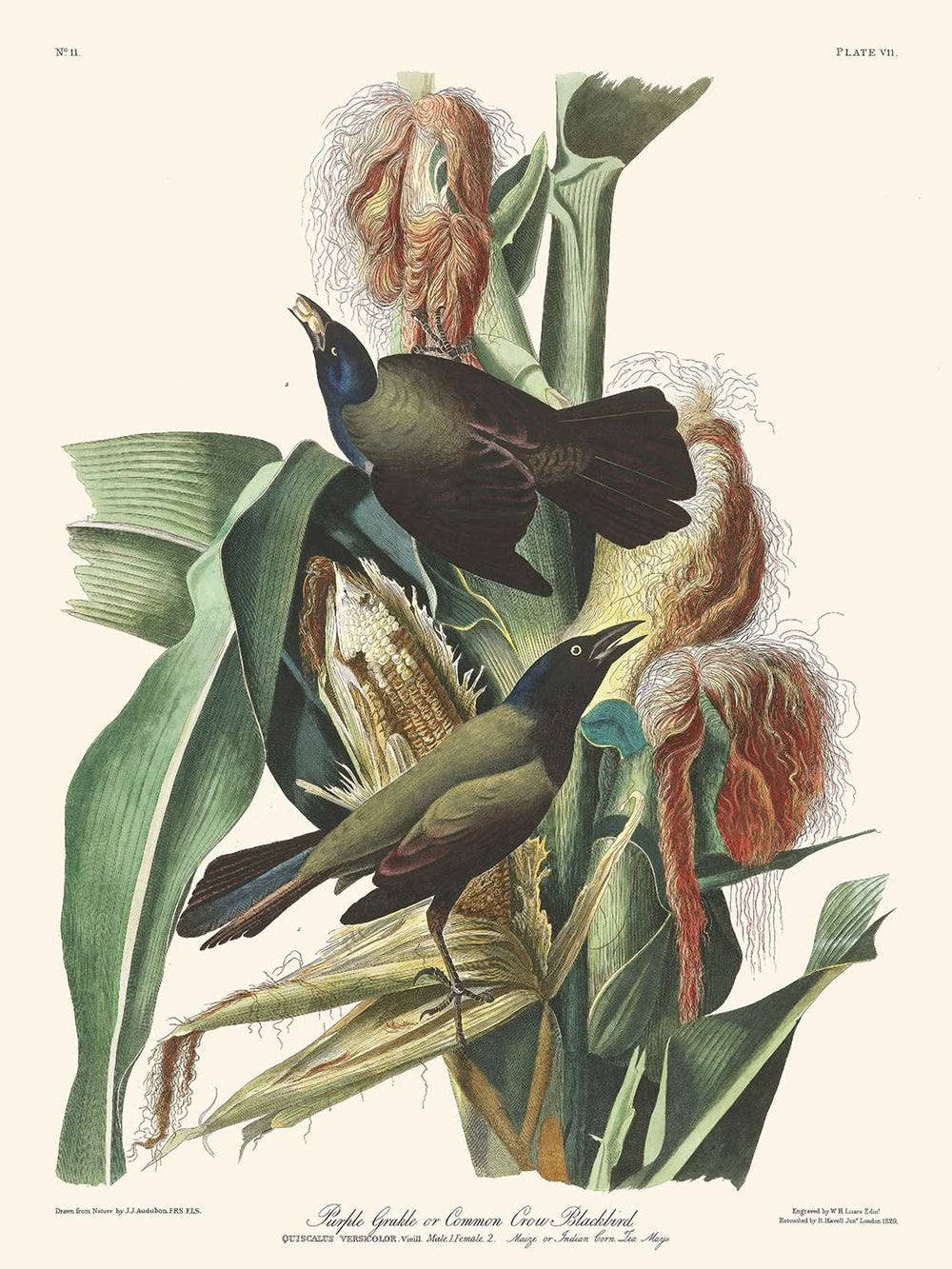 Mirlo común o grakle morado, de John James Audubon, 1827