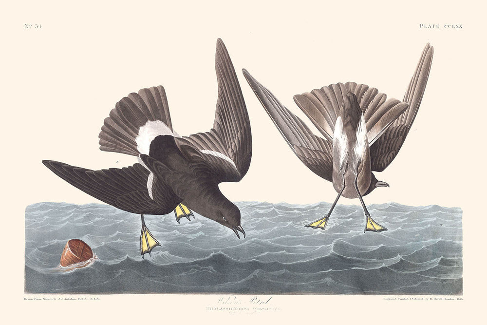 Audubon no solo fue un artista, sino también un observador apasionado del mundo natural. Conocido por su extraordinaria atención al detalle y su capacidad para animar a sus sujetos, destacó las sutilezas en el comportamiento y la belleza de las especies aviares. El "Petrel Tormentoso" es notable por su representación del espíritu dinámico y resiliente de estas aves marinas, conocidas científicamente como Procellaria pelagica. Esta obra refleja no solo el estilo distintivo de Audubon, sino también su profundo respeto y admiración por el hábitat natural y sus habitantes.