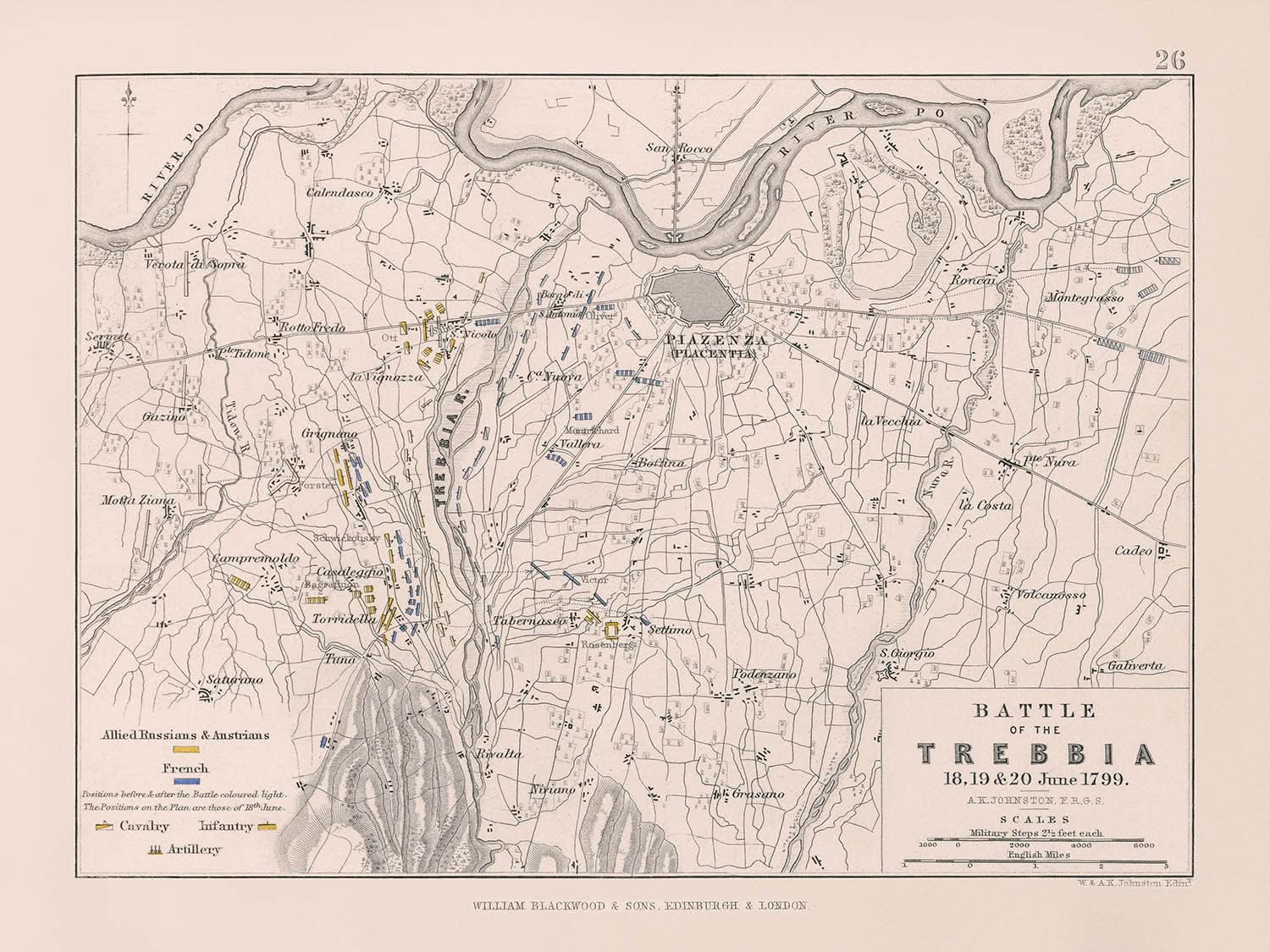 Batalla de Trebbia por AK Johnston, 1799: Guerra Revolucionaria Francesa
