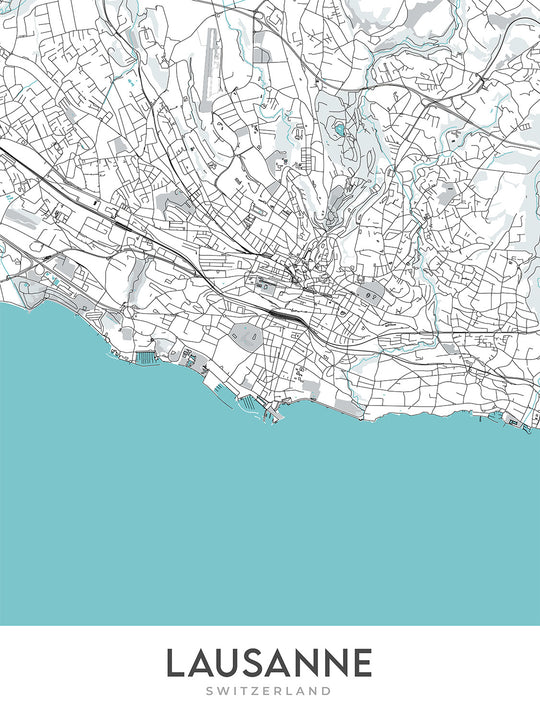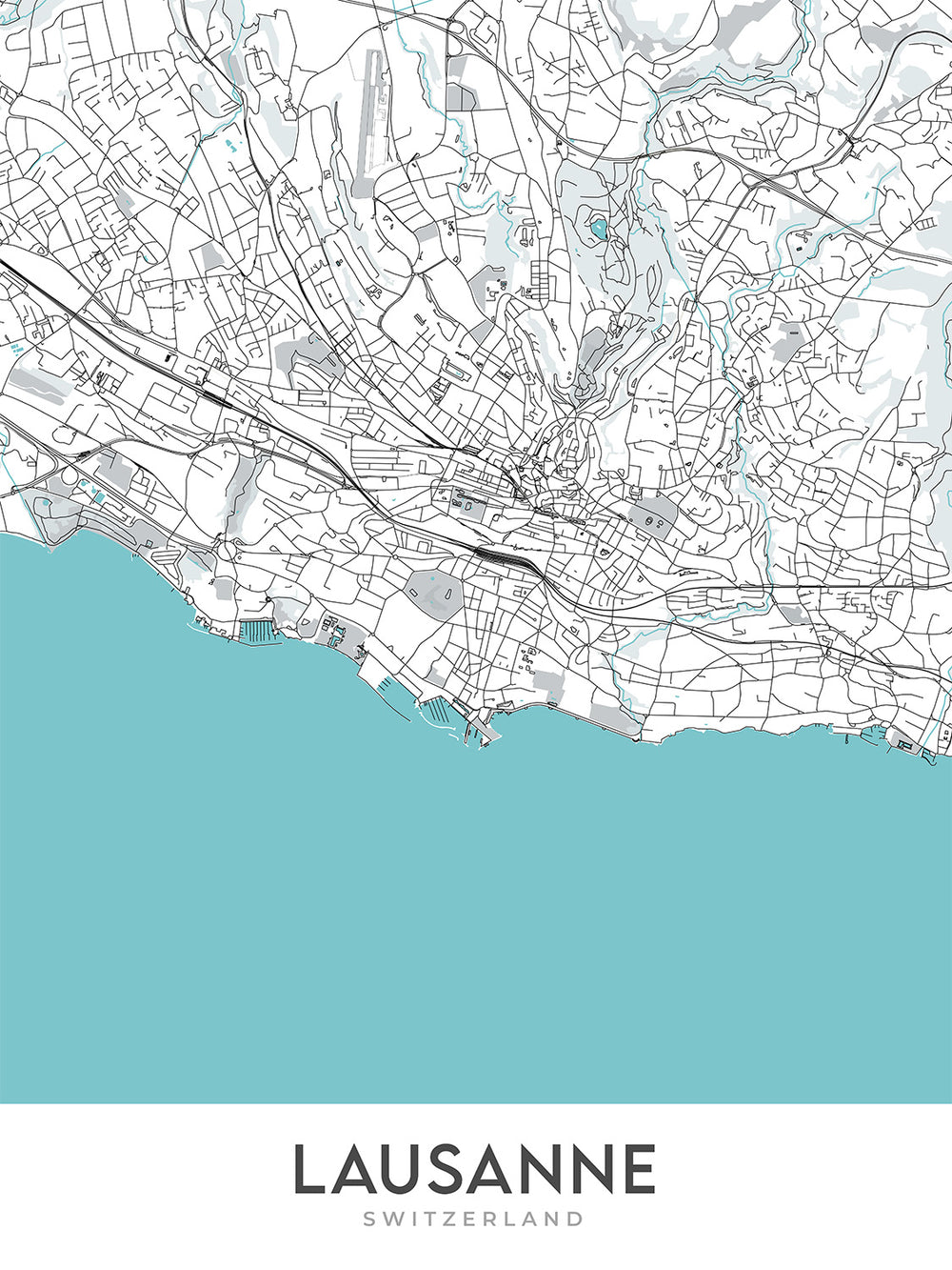 Lausana es una ciudad en constante evolución. Están surgiendo nuevos desarrollos por toda la ciudad y el horizonte de la ciudad está cambiando rápidamente. Este mapa captura Lausana en un momento en el tiempo y es un recordatorio de la rica historia de la ciudad y su brillante futuro.