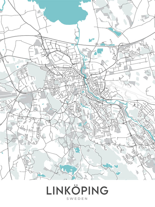 Este mapa de Linköping, Suecia, es un callejero moderno y detallado sin etiquetas. Se centra en la ciudad de Linköping y sus alrededores, proporcionando una representación precisa y visualmente atractiva del diseño de la ciudad. El mapa cubre una amplia gama de barrios, incluidos Valla, Ekholmen, Tornby, Berga, Stångebro, Johannelund, Tannefors, Vimanshäll, Hageby y Skäggetorp.