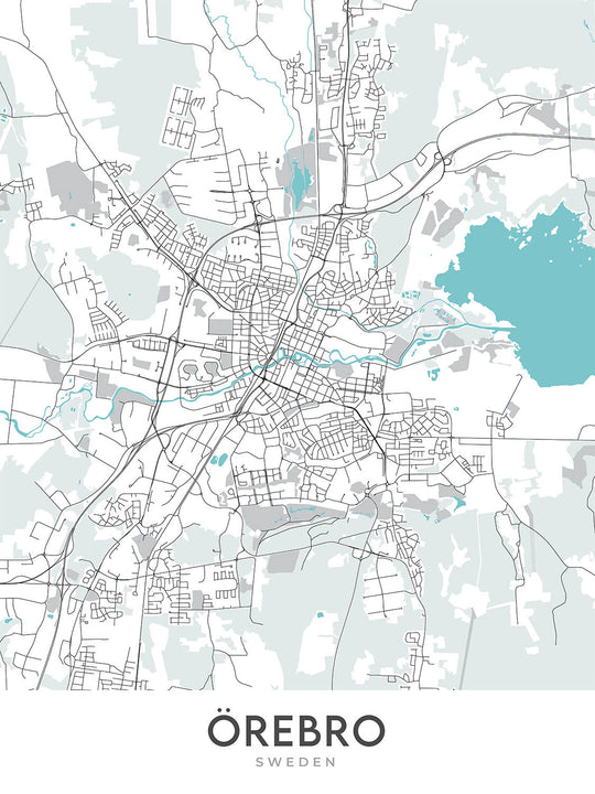 Este mapa de Örebro, Suecia, es una obra de arte cartográfica moderna y detallada que se centra en el trazado de las calles de la ciudad. El mapa es una mirada fascinante al paisaje urbano, que muestra la intrincada red de carreteras y autopistas que conectan los barrios y puntos de referencia de la ciudad. El mapa cubre una parte importante de Örebro, incluido el centro de la ciudad y sus alrededores, proporcionando una descripción completa de la geografía de la ciudad.