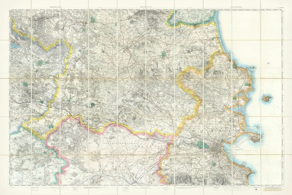 • Mapa finamente ejecutado del área alrededor de Dublín y Meath.