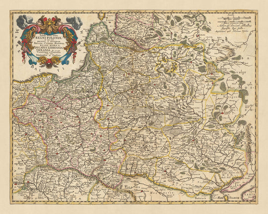 El nombre completo del mapa, traducido del latín, dice: "Nueva Tabla de Todo el Reino de Polonia: en la que están los Ducados y Provincias de Prusia, Cujavia, Mazovia, Rusia Negra, etc., Ducado de Lituania, Ucrania, etc., en que Volinia y Podolia, con sus Palatinados y fronteras. Esta amplia cobertura ofrece una visión integral de la región, que abarca no solo Polonia, sino también partes de la actual Bielorrusia, Ucrania, Lituania y Rusia.