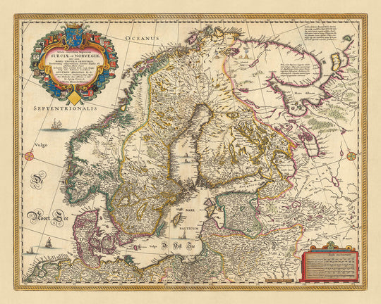 Este impresionante mapa, titulado 'Tabula exactitud Regnorum Sueciae et Norvegiae, nec non Maris Universi Orientalis Terrarumque adyacenteium. Summo studio ab Andrea Bureo Sueco in lucem edita... A Nicolao Iohannide Piscatore', fue elaborado por Nicolaes Visscher II en 1690. Visscher II era nieto de Claes Janszoon Visscher, un reconocido cartógrafo durante la Edad de Oro holandesa. El título se traduce como "Un mapa muy preciso de los Reinos de Suecia y Noruega, así como de todo el Mar del Este y tierras adyacentes". Con gran diligencia sacado a la luz por el sueco Andreas Bureus... por Nicolaes Visscher'.