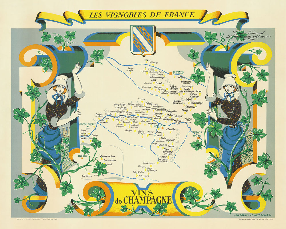 - Nombre del mapa: Les Vignobles De France -- Vins De Champagne (Los viñedos de Francia -- Vinos de Champagne)
