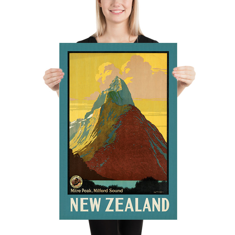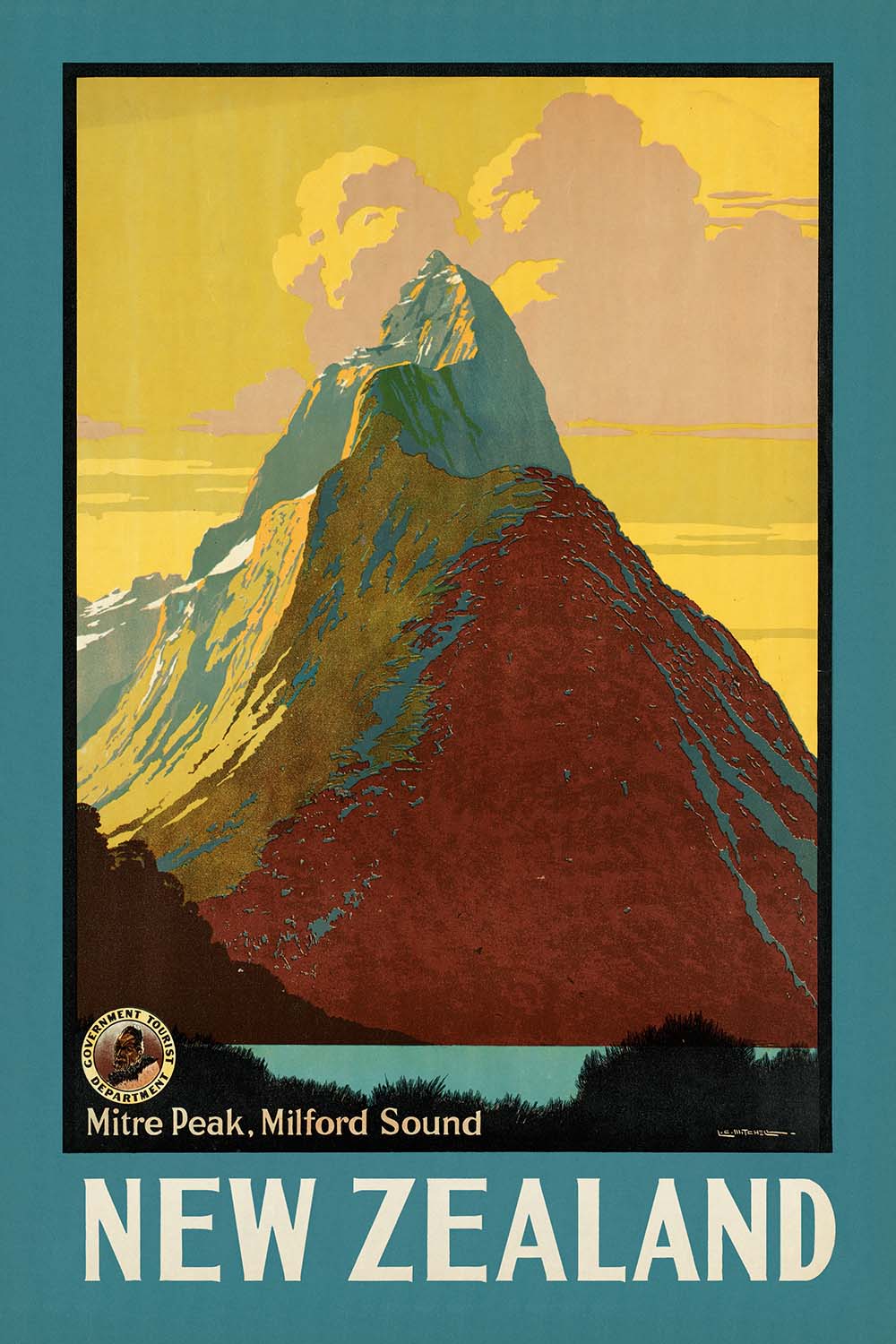 Milford Sound Travel Poster: Mitre Peak by Leonard Cornwall Mitchell