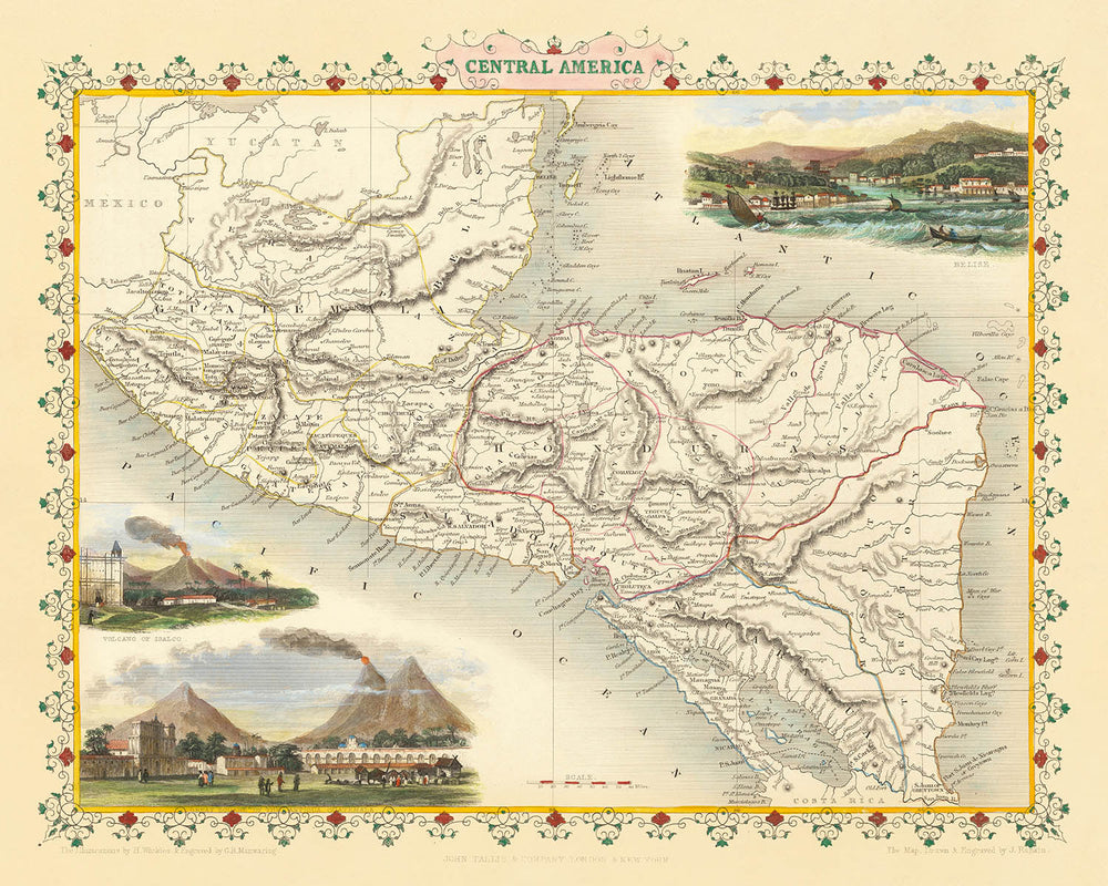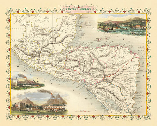 Beyond its aesthetic appeal, this map holds deep historical significance. The inclusion of the "Mosquito Territory" reflects the shifting colonial ambitions and indigenous sovereignties that defined Central America in the mid-19th century. The map’s blend of political boundaries, natural landmarks, and evocative illustrations invites the viewer to explore a region at the crossroads of empire, trade, and cultural exchange. As both a work of art and a historical artifact, "Central America" by John Tallis is a rare treasure for collectors and connoisseurs of cartographic history.