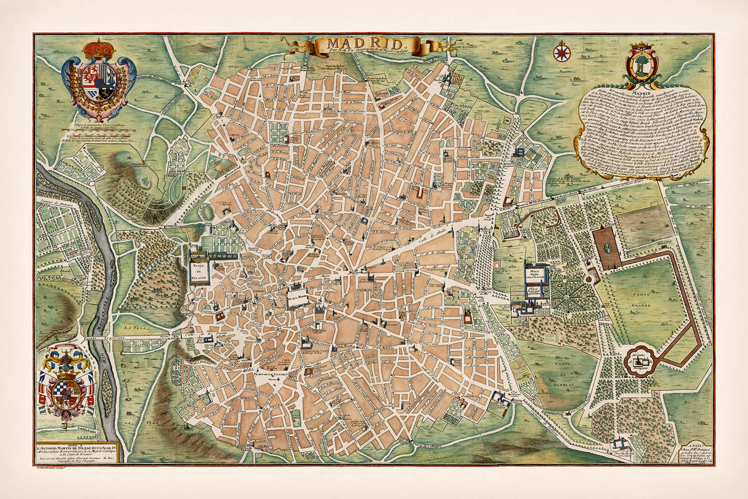 • Significado histórico: Uno de los mapas más grandes de Madrid de la primera mitad del siglo XVIII.