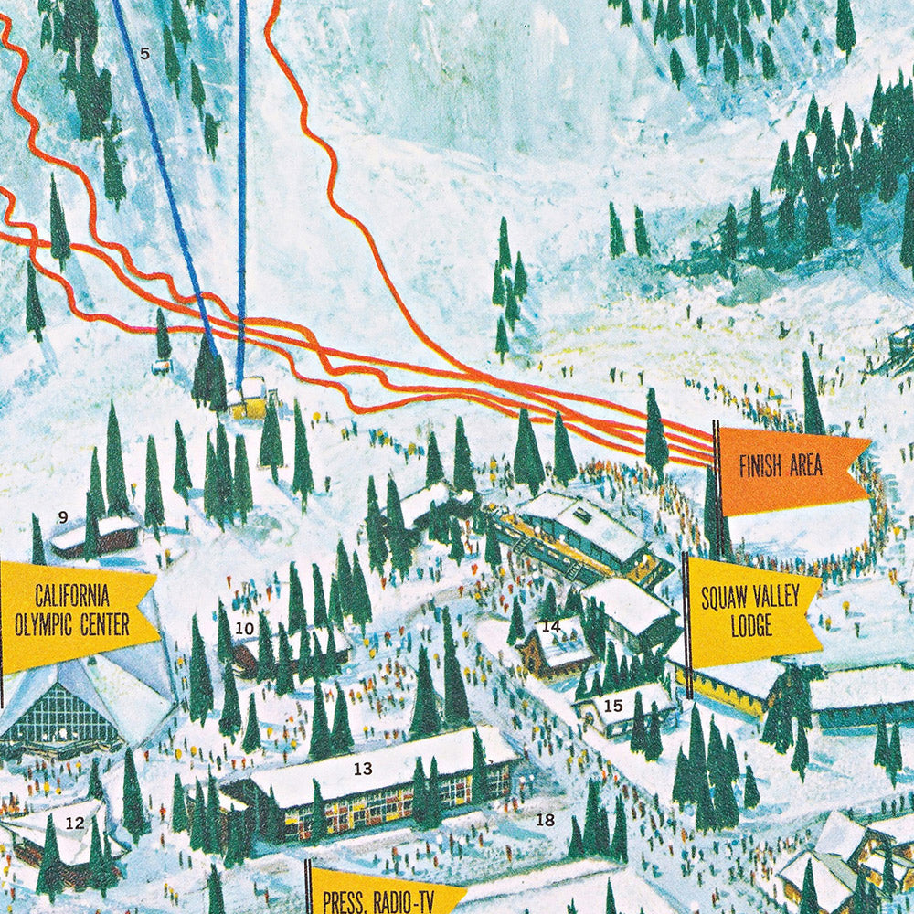 Old Map of Squaw Valley USA, 1960 Winter Olympics: Rink, Speed Oval, Ski Jump, Village, Men's DH
