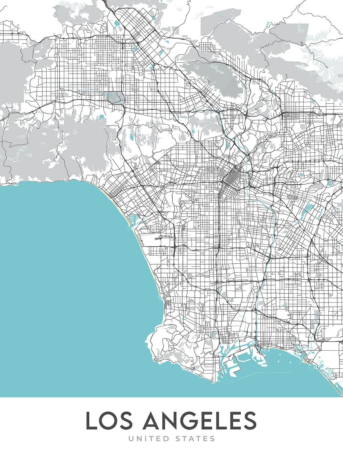 El mapa está impreso en papel de alta calidad y está disponible en varios tamaños. Es el regalo perfecto para cualquiera que ame Los Ángeles o para cualquiera que aprecie los mapas hermosos.