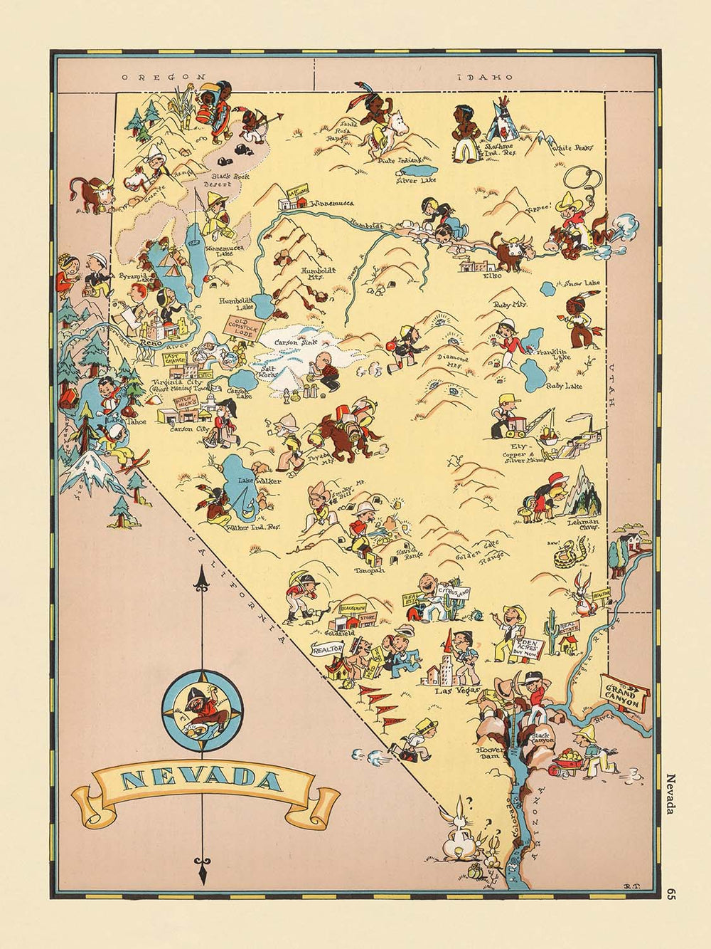 Pictorial Map of Nevada by Ruth Taylor White, 1935: Las Vegas, Reno, Carson City, Mining, Railroads