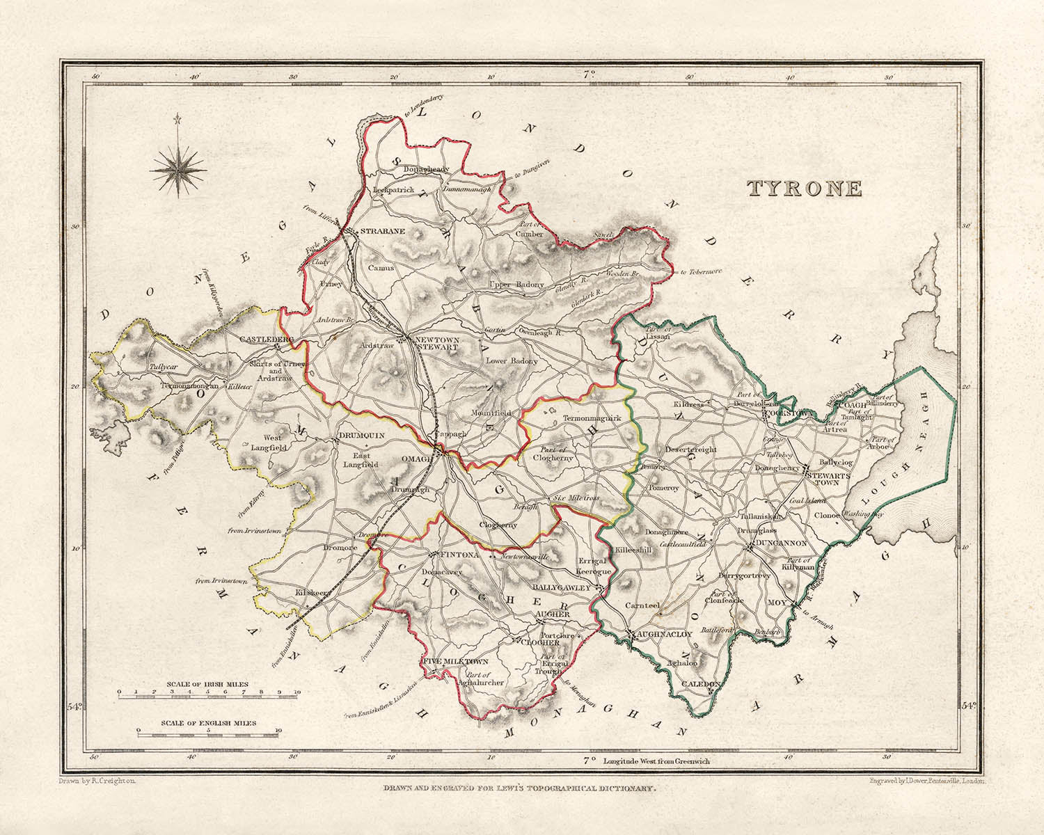 Posee un pedazo de historia con este antiguo mapa de Tyrone de Samuel Lewis, 1844, y profundiza en el fascinante pasado de este condado irlandés.