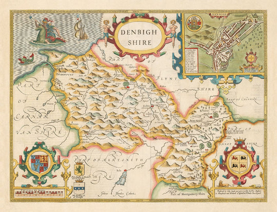Mapa antiguo de Denbighshire Gales 1611 de John Speed - Denbigh, Wrexham, Llandudno, Abergele
