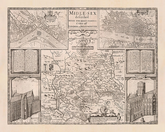 John Speed fue uno de los cartógrafos más célebres de su época. Sus mapas eran conocidos por su precisión y detalle, y fueron ampliamente utilizados tanto por comerciantes, exploradores y eruditos. El mapa de Middlesex de Speed se publicó por primera vez en 1610 y fue actualizado y revisado varias veces durante las siguientes décadas. Esta edición de 1676 es uno de los mapas más detallados y precisos de Middlesex jamás producido.
