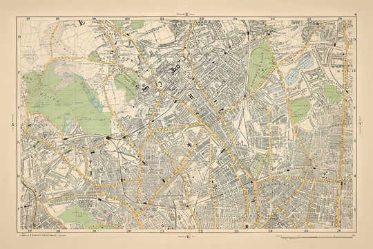 La hoja 6 del Nuevo Gran Atlas de Londres y sus suburbios de Bacon, elaborado en 1900, ofrece una fascinante visión de Londres Norte-Central durante una era de transformación crucial. Este mapa captura el delicado equilibrio entre los extensos monumentos victorianos y los restos de tierras agrícolas pastorales. A medida que exploras sus intrincados detalles, descubrirás la coexistencia armoniosa del desarrollo urbano y la belleza natural, con áreas como Hampstead Heath y Finsbury Park proporcionando santuarios verdes en medio de la expansión de la ciudad.
