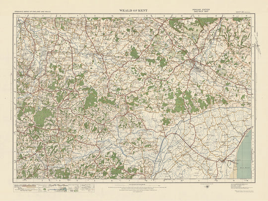 Este mapa muestra Weald of Kent, una región histórica ubicada en el condado de Kent, Inglaterra. Ofrece una perspectiva única sobre el paisaje, los asentamientos y los puntos de referencia del área tal como existían en 1925. Es importante tener en cuenta que, si bien algunas ciudades modernas pueden no estar presentes en este mapa, brinda la oportunidad de explorar la región en tiempos anteriores. nombres o descubra ciudades y pueblos menos conocidos que han evolucionado desde entonces.