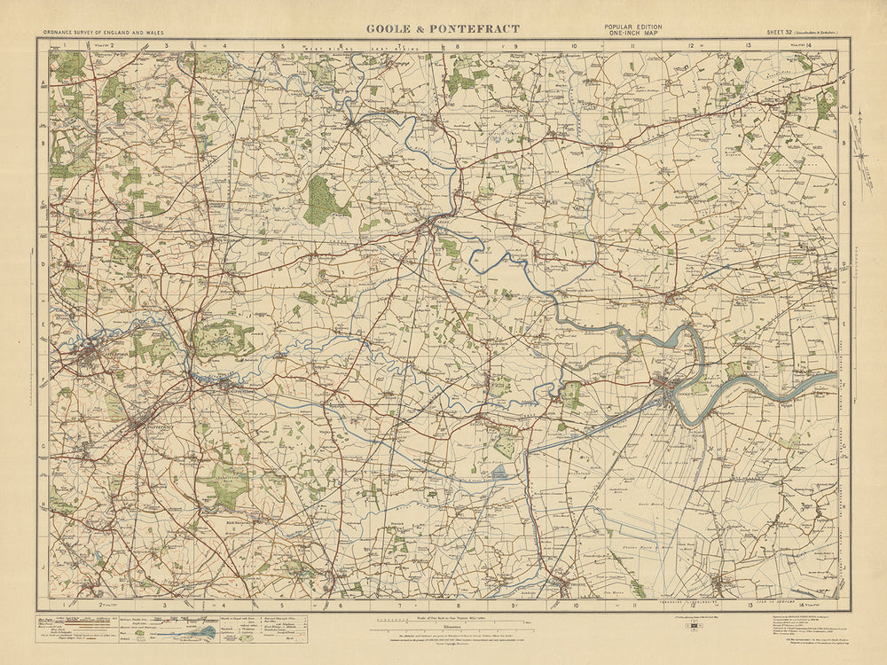 Sumérjase en la rica historia y la detallada cartografía de este mapa antiguo de Ordnance Survey, hoja 32 - Goole & Pontefract, 1925. Explore las ciudades, los ríos y las fronteras que dieron forma a la región, y descubra las historias del pasado.