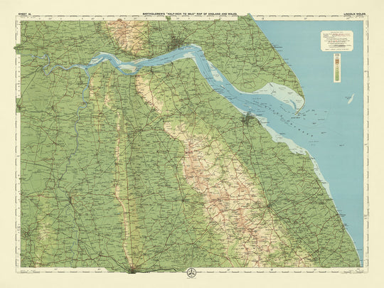 El diseño del mapa es una clase magistral en la artesanía cartográfica, empleando una sutil gradación de bandas de color para representar el relieve del paisaje. Esta técnica innovadora permite a los espectadores discernir fácilmente las diferentes elevaciones de los Lincoln Wolds, una región conocida por sus colinas onduladas y su belleza escénica. Basado en un mapa de la Oficina de Ordenanzas reducido de la misma época, la representación de Bartholomew captura los intrincados detalles del terreno, desde las colinas ondulantes hasta las extensas tierras bajas de The Fens. El cuidadoso uso del color y la sombra da vida a la geografía física, convirtiéndolo en una herramienta indispensable para los viajeros y un objeto apreciado por los coleccionistas.