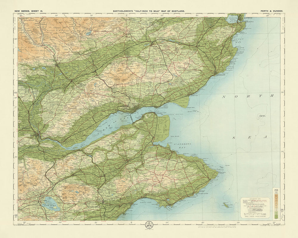 - Nombre del mapa: Hoja 13: Perth y Dundee, parte de la serie de mapas de media pulgada de las Islas Británicas de Bartholomew.