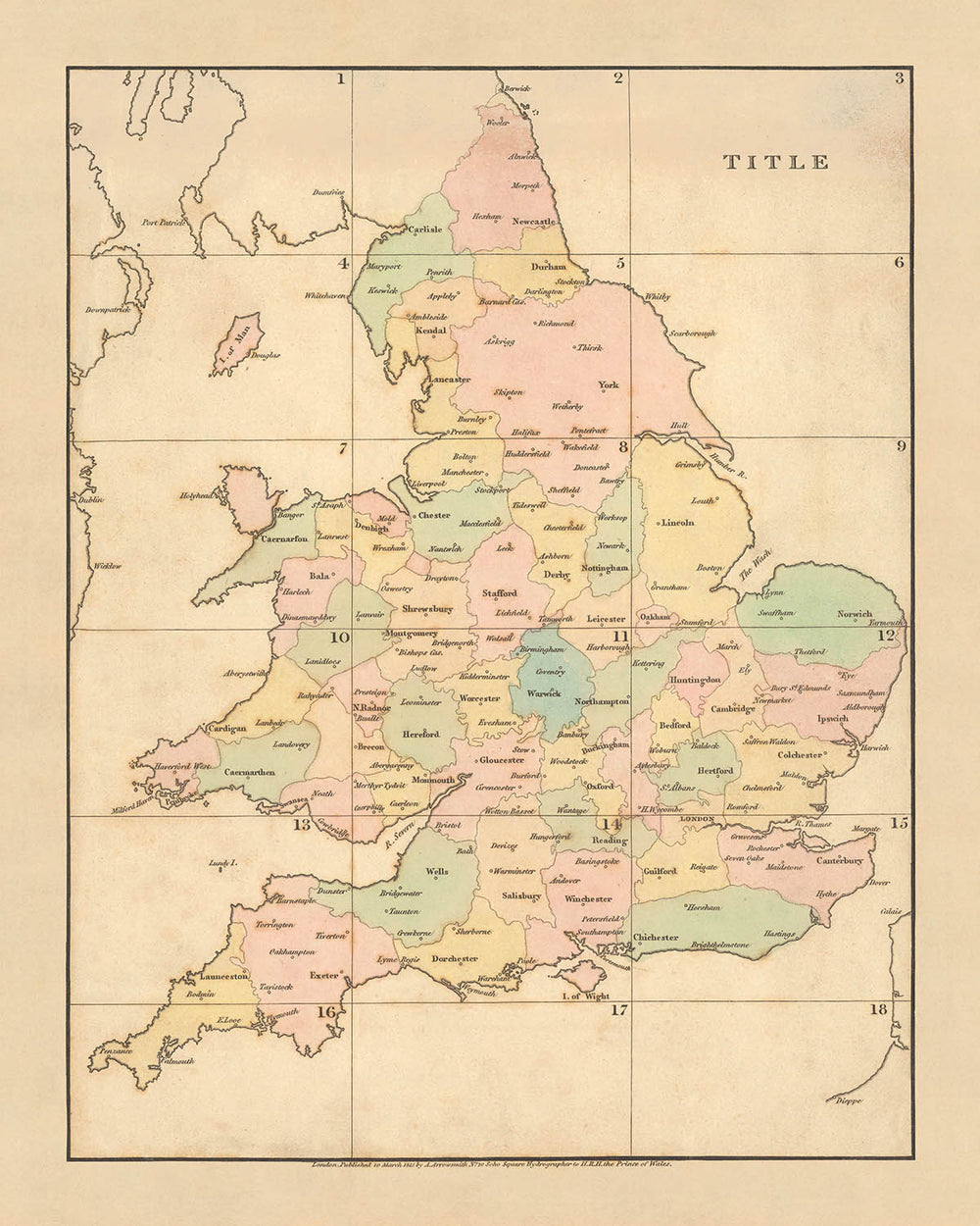 Aaron Arrowsmith, figura destacada del mundo de la cartografía, era conocido por sus mapas detallados y precisos. Su dedicación a su oficio es evidente en este mapa, que fue creado con la intención de proporcionar una representación completa y accesible de Inglaterra y Gales. El trabajo de Arrowsmith fue muy apreciado y sus mapas fueron utilizados a menudo por exploradores y navegantes de la época. Este mapa en particular, dedicado al Príncipe Regente, destaca la conexión de Arrowsmith con la corte real y su condición de cartógrafo respetado.