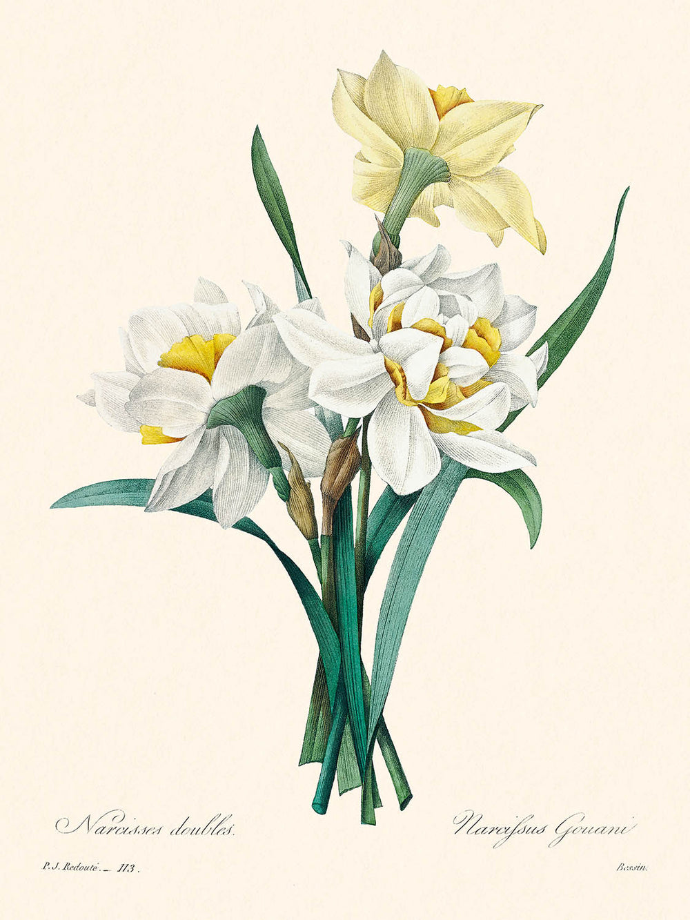 Ilustración botánica de Doble Narciso por Pierre-Joseph Redouté, 1827