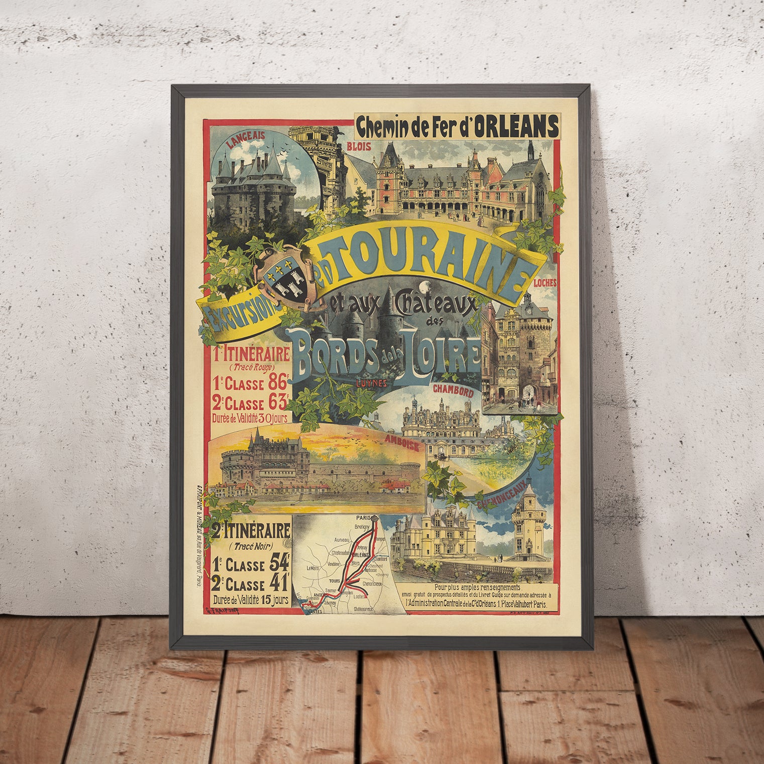 Loire Valley Travel Poster: Excursions en Touraine et aux Châteaux de la Loire by Gustave Fraipont, 1892