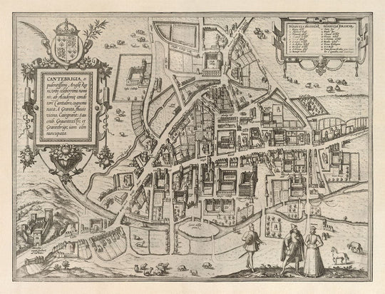 Old Map of Cambridge and University Colleges, 1575 by Georg Braun-Trinity, Kings, Queens, Clare