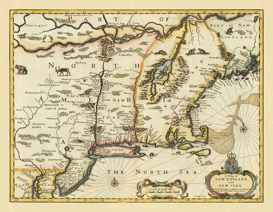 Este mapa fue publicado originalmente en un momento muy interesante para los intereses británicos en el Nuevo Mundo: el Imperio Británico acababa de capturar Nueva Ámsterdam de los holandeses y la renombró Nueva York en 1664. Este fue uno de los primeros mapas de las Colonias Británicas de América del Norte publicados en atlas en el viejo mundo - y en ese entonces, los mapas y las fronteras dibujadas en ellos eran políticamente muy significativas.