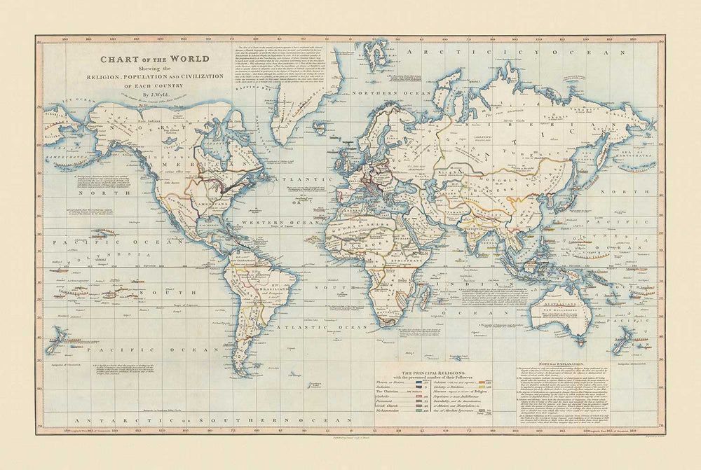 Esta maravillosa antigua mapa de "la Religión, Población y Civilización de Cada País en el Mundo" fue publicada originalmente en 1818. Fue creada por James Wyld.