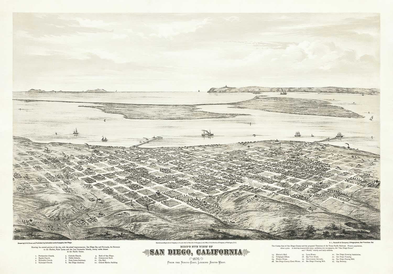 Este es uno de los primeros y más raros de San Diego, publicado en 1876 por Eli Sheldon Glover, cuando la ciudad tenía una población de aproximadamente 4,000 personas.