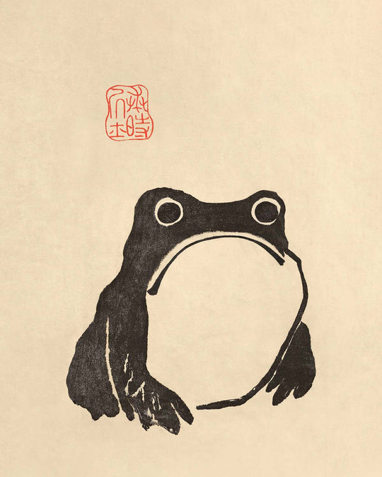 This charming and poignant woodblock print, Sad Frog by Matsumoto Hoji, captures an emotive moment in nature with remarkable simplicity and sensitivity. Originally published in 1815 within the celebrated Japanese series "Pictures by Famous Artists (Meika gafu) 名家画譜," this artwork has since become beloved for its expressive character and delicate artistic execution. Though Matsumoto Hoji himself remains something of an enigma in art history, his Sad Frog has transcended anonymity, becoming admired worldwide for its relatable emotional resonance.