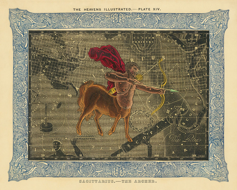 Ofrecemos con orgullo una impresión de arte fino de "Sagitario, El Arquero," meticulosamente restaurada y preparada por The Unique Maps Co. Cada pieza está impresa en un hermoso papel mate de archivo grueso, asegurando que la impresión permanezca vibrante e impecable durante décadas. Además, puedes personalizar y adaptar esta obra de arte para hacerla única.