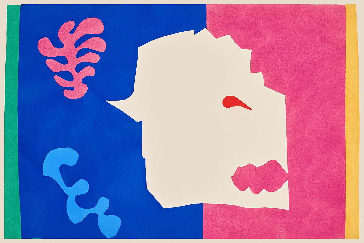 Henri Matisse fue una figura destacada en el Arte Moderno, particularmente conocido por su capacidad para crear composiciones vibrantes que capturaban emociones a través del uso intenso del color y formas audaces. "El lobo" ejemplifica su cambio hacia formas brillantes y simplificadas y hace que el arte sea accesible a través de la expresión minimalista, un testimonio de su continua innovación hasta el final de su vida.