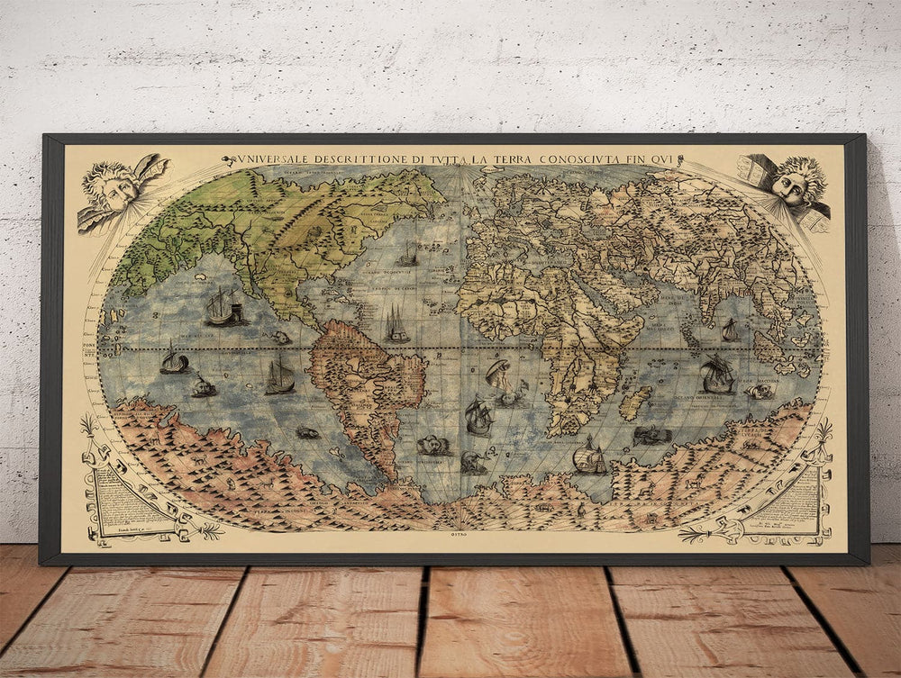 Mapa del Viejo Mundo, 1565 de Ferando Bertelli: Tabla de pared Atlas antigua