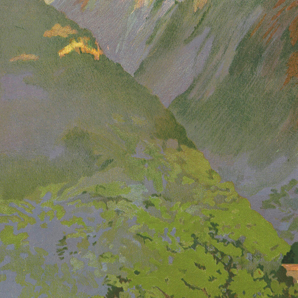 Julien Lacaze was an early 20th‑century French illustrator and poster artist active in Paris, working for major railway companies and tourist boards during the flourishing poster era. His work is known for refined lithographic color, dramatic mountain scenery, and typography that balances elegance with clarity—qualities that made his travel designs particularly persuasive for an audience dreaming of fresh air and curative waters.