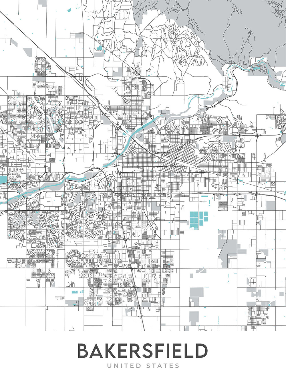 Este mapa de Bakersfield es una excelente manera de agregar un toque de estilo a su hogar u oficina. El diseño moderno del mapa y sus combinaciones de colores únicas complementarán cualquier decoración, y su mapa de calles detallado te ayudará a navegar por la ciudad con facilidad. El mapa también es un gran regalo para cualquiera que ame los mapas, la geografía o la ciudad de Bakersfield.