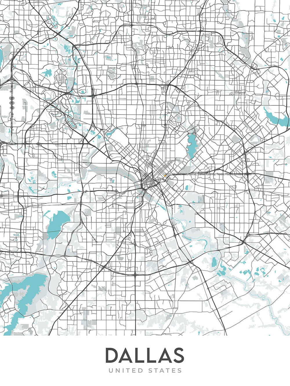 El mapa muestra un notable nivel de detalle, capturando la esencia de Dallas y sus alrededores. Desde el bullicioso centro de la ciudad hasta los tranquilos barrios residenciales, cada ubicación está representada meticulosamente, proporcionando una visión general completa del diseño de la ciudad. Los puntos de referencia notables, como el Estadio de los Dallas Cowboys y el Arboreto y Jardín Botánico de Dallas, se destacan de manera destacada, lo que aumenta el atractivo del mapa.