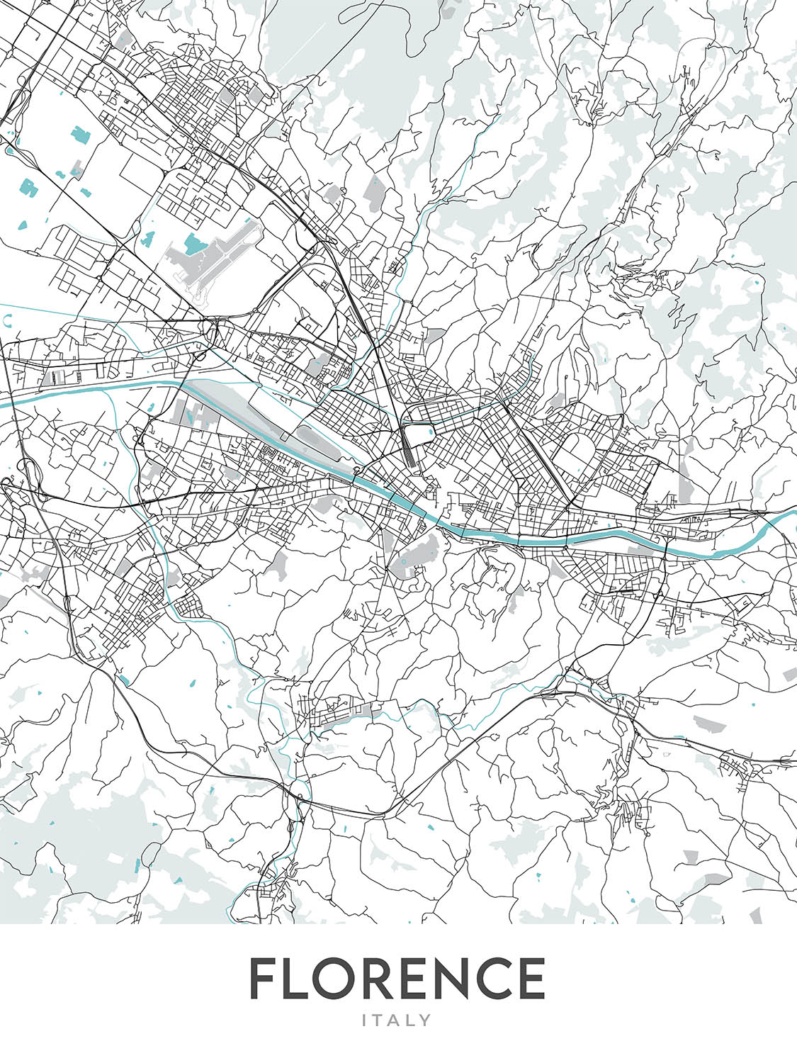 Mapa moderno de la ciudad de Florencia, Italia: Duomo, Uffizi, Ponte Vecchio, Santa Croce, Oltrarno