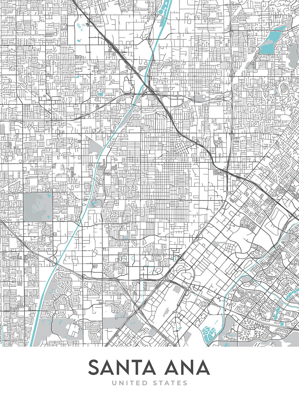 Este mapa de Santa Ana es imprescindible para cualquiera que ame esta vibrante ciudad. Es una obra de arte hermosa e informativa que agregará un toque de sofisticación a cualquier hogar u oficina.