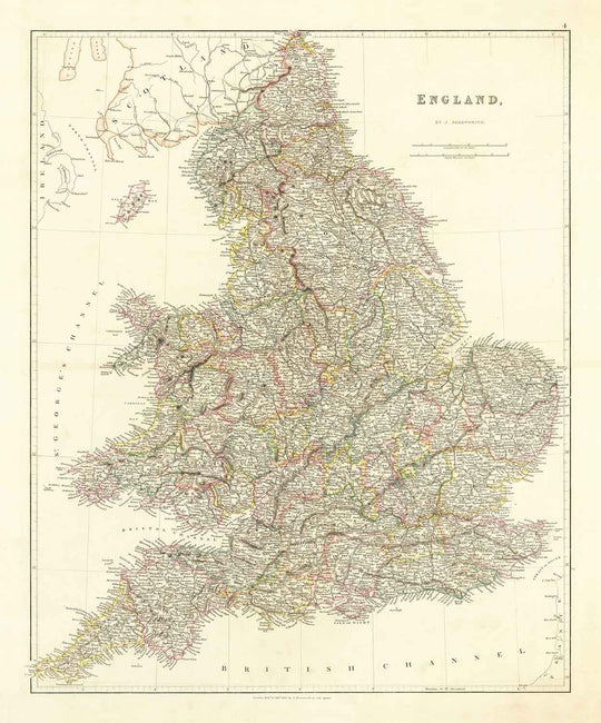 Un hermoso mapa de los condados de Inglaterra y Gales, publicado originalmente en 1832 por probablemente el cartógrafo más buscado de mediados del siglo XIX, John Arrowsmith.
