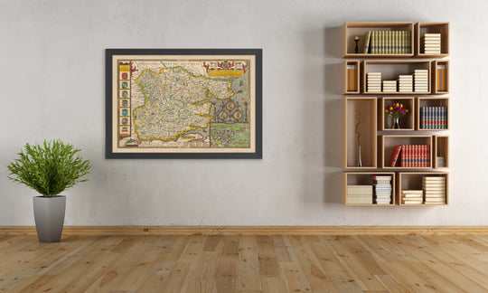 Viejo mapa de Essex por John Speed 1611: Southend, Colchester, Chelmsford, Basildon, Romford