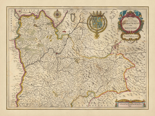 El mapa captura la esencia de Dauphiné, destacando las principales ciudades de Chambéry, Grenoble, Lyon y Valence. Cada ciudad está representada con notable precisión, revelando el paisaje urbano de finales del siglo XVII. El mapa también presenta el Parque Nacional Vanoise, el primer parque nacional de Francia, conocido por su impresionante paisaje alpino. Esta inclusión muestra el compromiso de Visscher de representar las maravillas naturales y artificiales de la región.