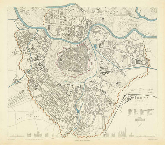 Sumérgete en el encanto histórico de Viena con esta intrincada representación de SDUK, que data de 1887. Este mapa antiguo ofrece una visión detallada del pasado y muestra los monumentos famosos y el intrincado diseño de la ciudad a finales del siglo XIX. Sirve como testimonio de la meticulosa artesanía de la época y del encanto perdurable de Viena, lo que lo convierte en una visita obligada para los entusiastas de la historia, los coleccionistas de mapas y los admiradores de la capital austriaca.