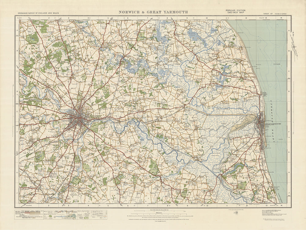 Sumérgete en el pasado con el mapa "Hoja 67 - Norwich y Great Yarmouth" de 1925 y explora el histórico condado de Norfolk con sus encantadoras ciudades, paisajes pintorescos e historia intrigante.