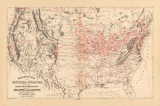 El antiguo mapa de los Estados Unidos creado por Samuel Mitchell en 1890 es un documento fascinante que permite vislumbrar el pasado del país. En ese momento, Estados Unidos se encontraba en medio de un período de rápido crecimiento y cambio, y el mapa refleja el entusiasmo y el optimismo de la época. El mapa está dominado por el ferrocarril transcontinental, terminado en 1869. Esta hazaña de ingeniería abrió Occidente a los asentamientos y ayudó a dar forma al curso de la historia estadounidense. El río Mississippi es otra característica destacada del mapa. Estas ubicaciones importantes están incluidas en este mapa: