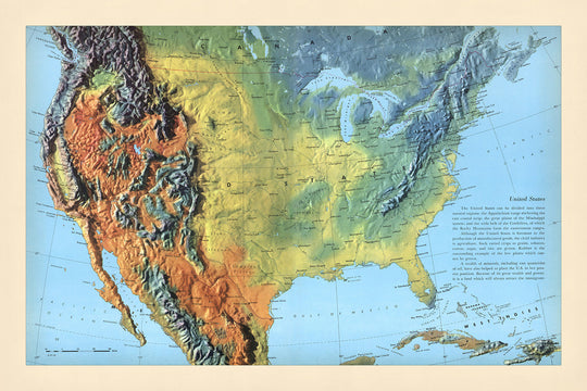 Antigua Mapa de Alivio de Sombra de América del Norte por Debenham, 1958: Alivio Detallado, Cadenas Montañosas
