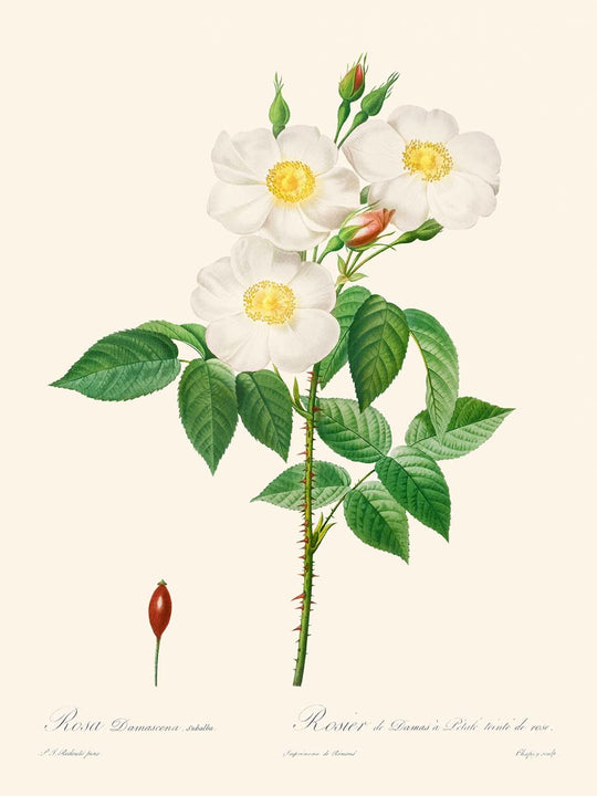 Rosa Damascena, Subalba de Pierre-Joseph Redouté, 1817