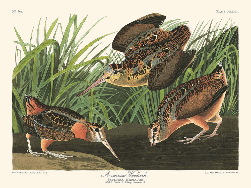 Dans le Bécasseau américain, Audubon dépeint l'oiseau avec un sens de la simplicité innocente, capturant à la fois sa vulnérabilité et sa ténacité. L'illustration représente subtilement l'équilibre délicat de l'oiseau avec la nature, ainsi que ses habitudes nocturnes et ses caractéristiques distinctives. L'utilisation de la couleur et le travail de pinceau détaillé d'Audubon dans cette illustration mettent en valeur le plumage unique de l'oiseau et son environnement naturel, offrant aux spectateurs un aperçu du monde serein de cet oiseau fascinant.