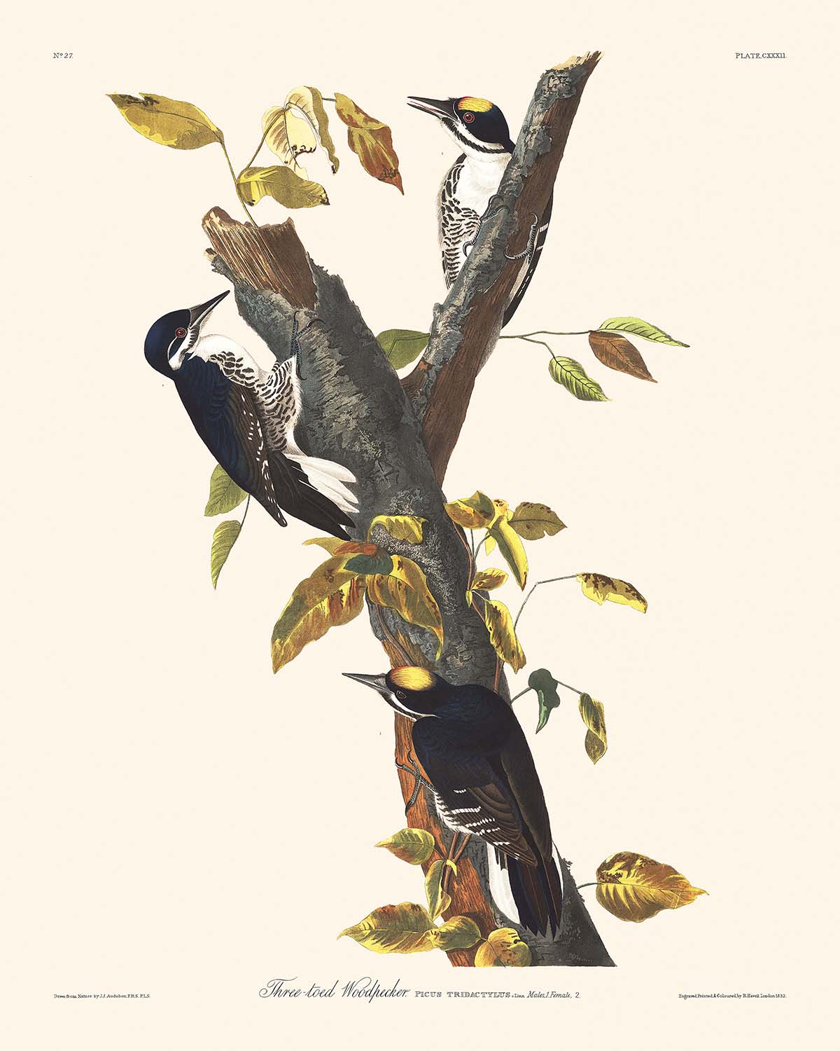 John James Audubon était une figure pionnière en ornithologie et en art, connu pour sa capacité extraordinaire à combiner précision scientifique et splendeur artistique. Ses techniques innovantes pour représenter les oiseaux dans des poses réalistes au milieu de décors luxuriants ont établi une nouvelle norme pour l'art animalier. "Pic vert à trois doigts" se dresse comme un témoignage de l'héritage d'Audubon, montrant le pic dans une pose dynamique contre un arrière-plan serein, attirant l'attention sur son plumage distinct.